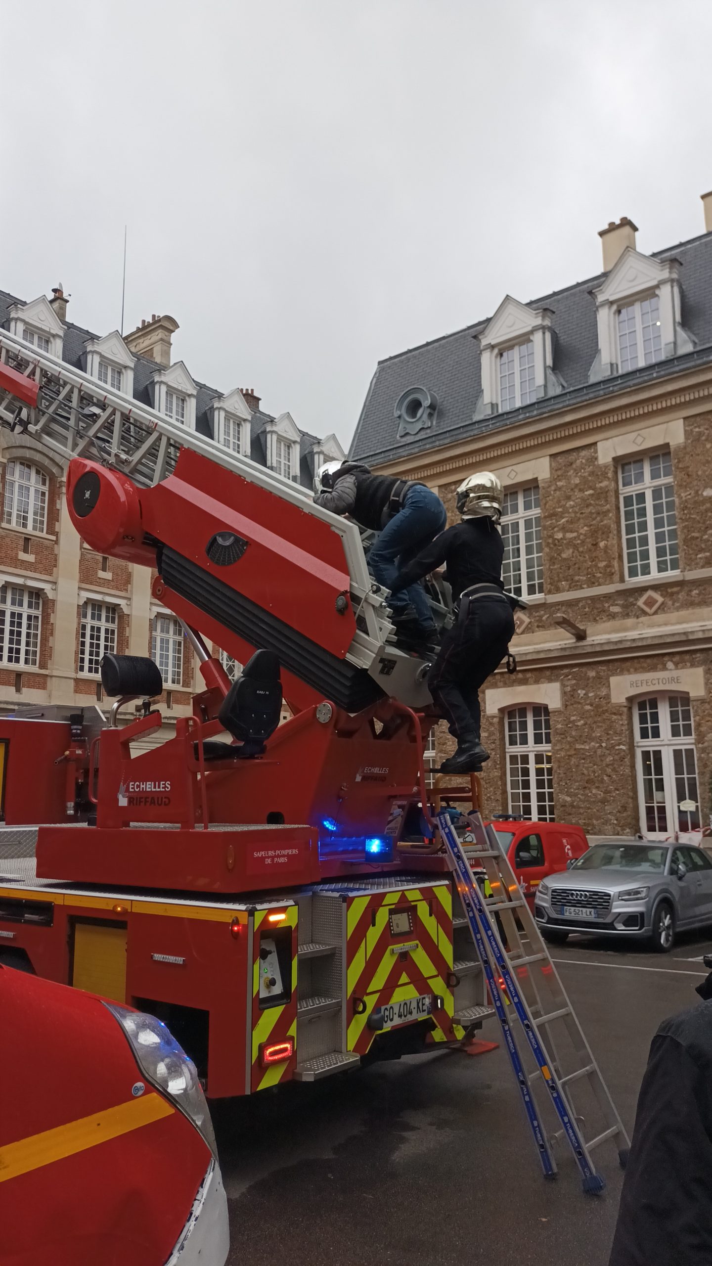 Les plus audacieux grimpent à la grande échelle déployée à 30 mètres — bravo à Ronald, Nicolas et leurs camarades !