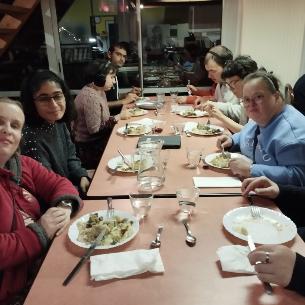 De retour au gîte, nous partageons le dernier repas du week-end :